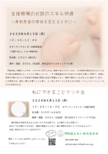 新型コロナウイルス感染防止のため、以下の研修およびランチ会の開催を中止いたします。再度開催する場合は改めてお知らせいたします。